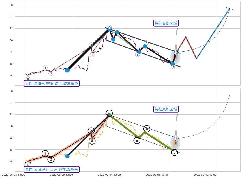 ➣ ['回调abc识别为: 【锯齿型调整浪】 ', '锯齿型:子浪535结构 ⓑ点振幅较小,ⓒ点继续发力远超ⓐ点结束位置']