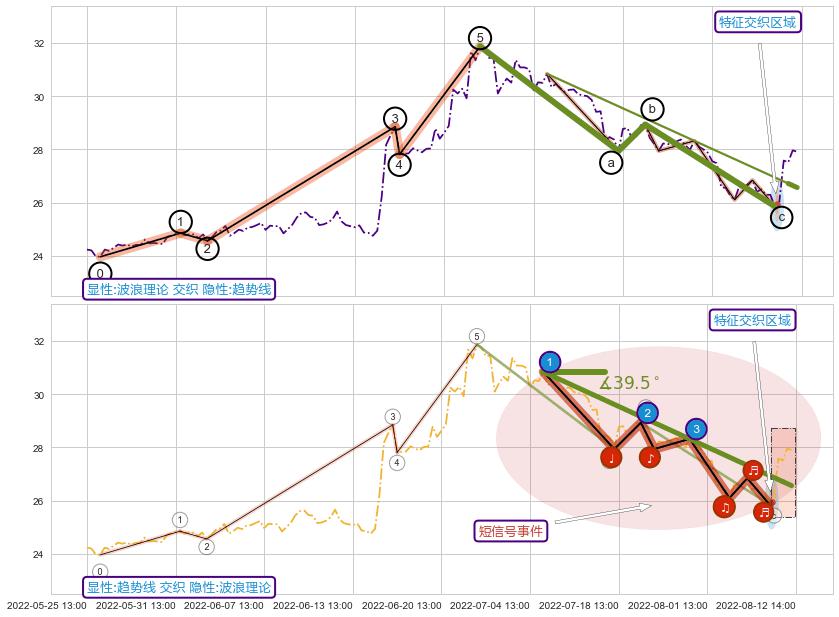 ➢ 趋势线属【短级别信号事件】波浪理论属【长级别信号事件】长短周期组合信号事件, 短长事件长度比34.87%