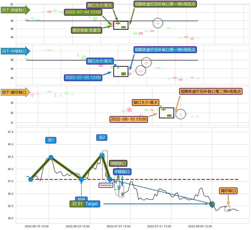 ➢ 2022-08-10 13:00形成:向下跳空【竭尽】缺口