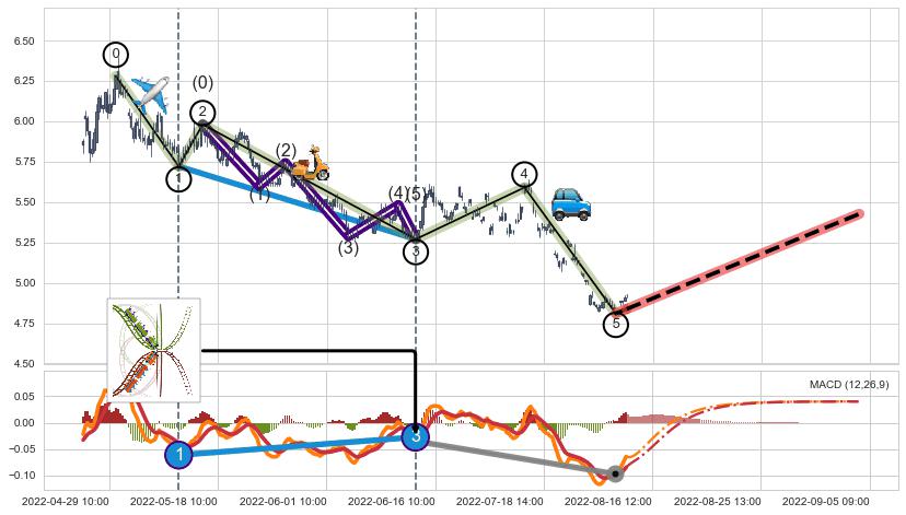 2022-06-06: 第一阻力位5.32有效抑制了下跌浪,成功阻止了价格的继续下跌。