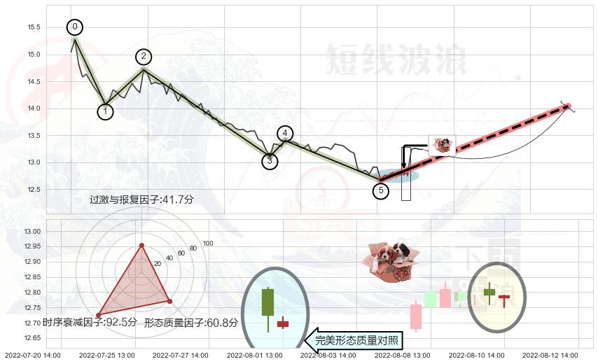 从2022-08-05 13:00至2022-08-12 14:00,共包含12个小时,阶段股价上涨4.47%,阶段股价变动位移路程比: 1 : 1.2