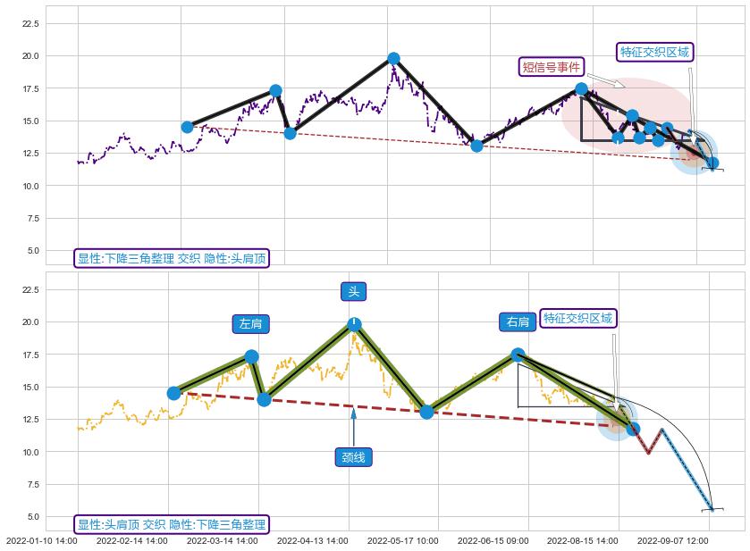 ➢ 下降三角整理属【短级别信号事件】头肩顶属【长级别信号事件】长短周期组合信号事件, 短长事件长度比16.06%