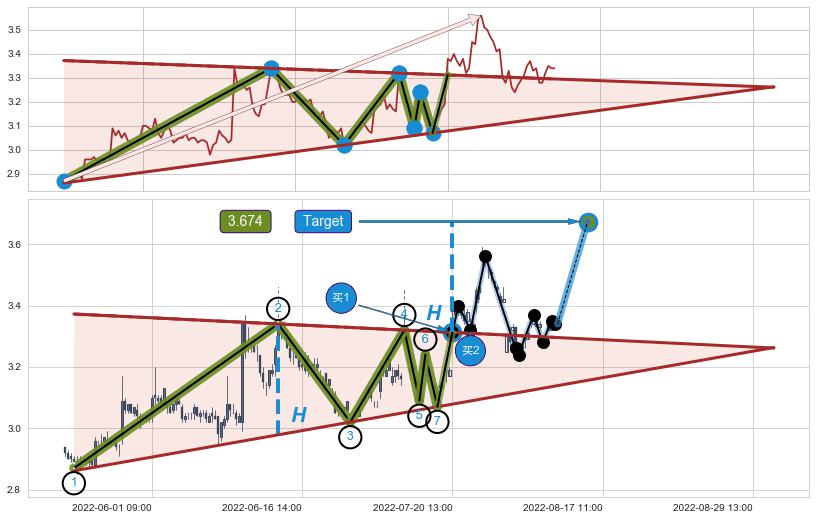 ➣ 【买2】: 保守型 买点 →(07-25:13: 3.320 )形成上升【对称】三角形整理突破后的【回抽确认】