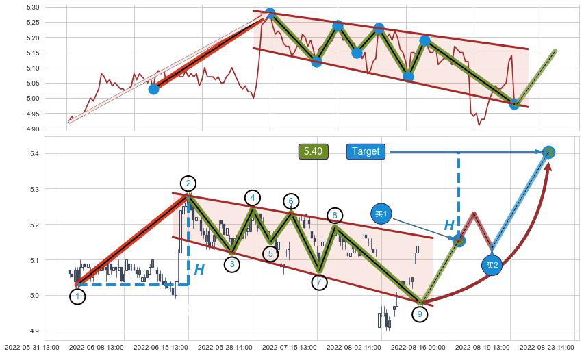 ➢ AI预测: 假定反转继续,第❸价格目标位置(08-23:13, 5.28)