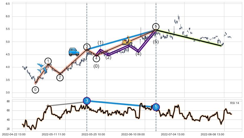 ➣ 第一, 三, 五浪上涨动能逐渐【衰弱变小】,趋势呈现不稳迹象
