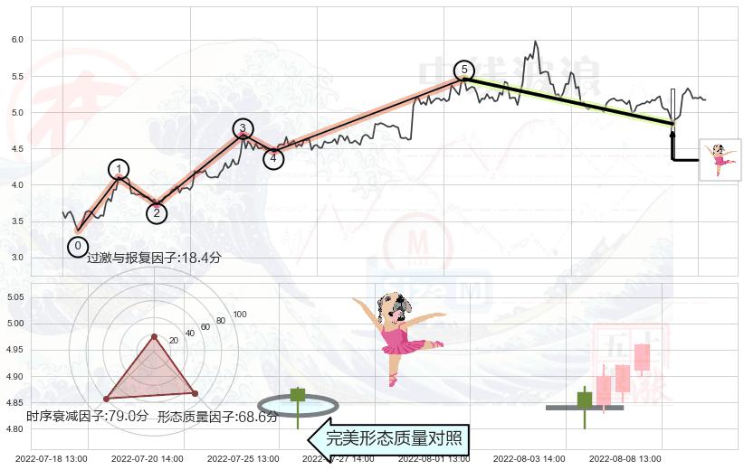 从2022-08-04 13:00至2022-08-12 14:00,共包含14个小时,阶段股价上涨6.79%,阶段股价变动位移路程比: 1 : 2