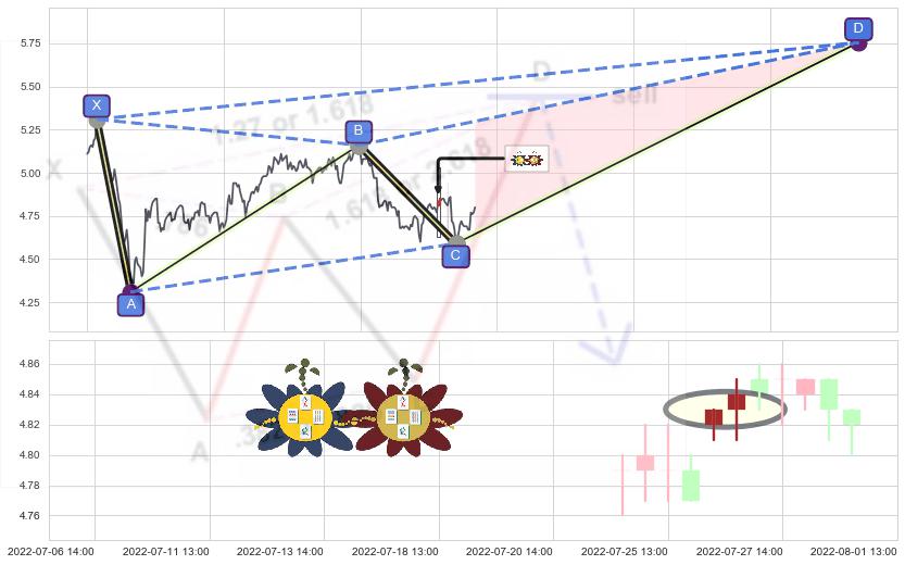 ➣ 谐波蝴蝶:猜想c点下沉接近b点后强支撑来临拉升上涨(均值回复)