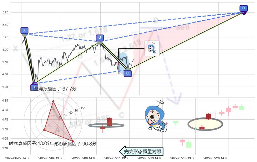 ➢ 双针探底 🔜 谐波蝴蝶c拐点上涨支撑 综合量化分数:52.54 【中性】