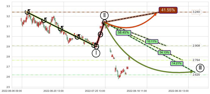 2022-06-09: 第一阻力位3.134有效抑制了下跌浪,成功阻止了价格的继续下跌。