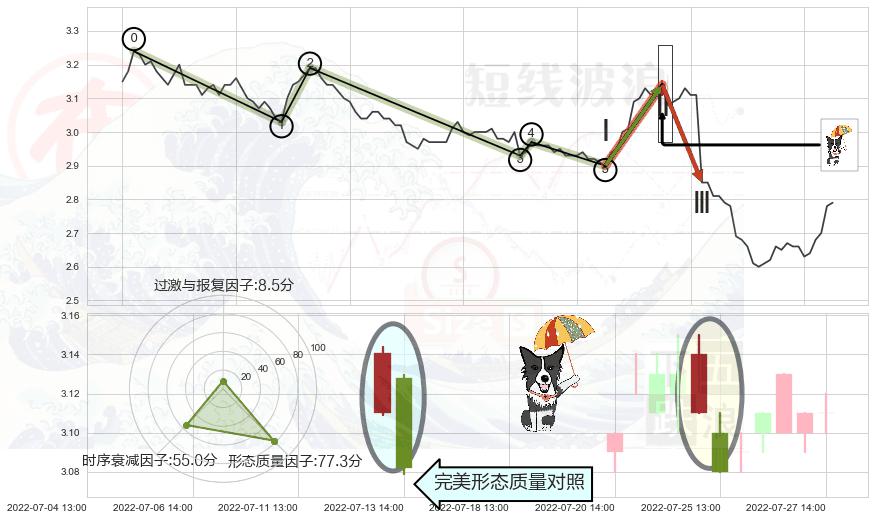 从2022-07-15 14:00至2022-07-22 14:00,共包含11个小时,阶段股价上涨8.02%,阶段股价变动位移路程比: 1 : 1.2