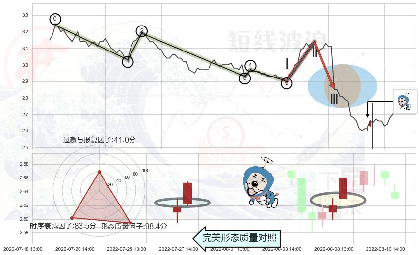 从2022-08-04 13:00至2022-08-12 14:00,共包含14个小时,阶段股价上涨7.14%,阶段股价变动位移路程比: 1 : 1.5
