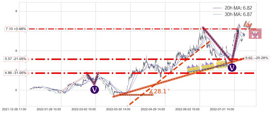 ♞ 20小时均线:6.82,30小时均线:6.87→ 快线<慢线