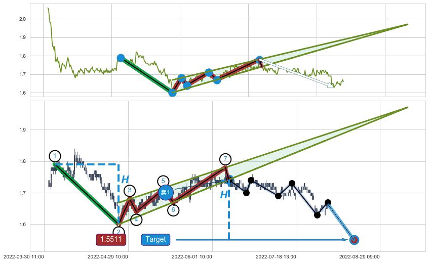 ➣ AI预测: 假定反转启动后, 第❶目标位置(12-22:10, 1.8540)