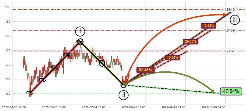 ➢ AI预测: 假定反转继续,第❸价格目标位置(08-22:10, 1.6000)