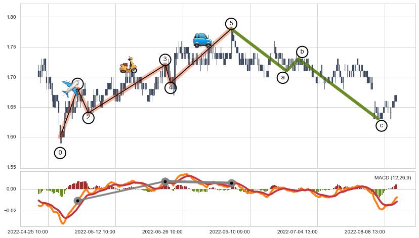 ➣ ['回调abc识别为: 【锯齿型调整浪】 ', '锯齿型:子浪535结构 ⓑ点振幅较小,ⓒ点继续发力远超ⓐ点结束位置']