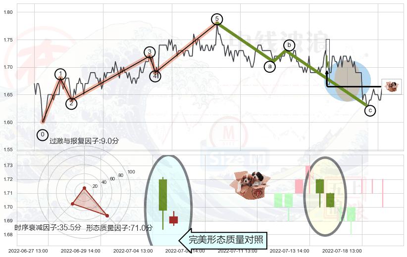 ➢ 🕰 价格走势在2022-07-14 13:00:00至2022-07-14 14:00:00期间形成底部尽头线(上山虎),残存影响值:2.47