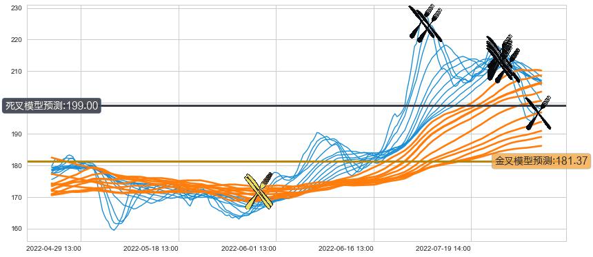➣ 30小时均线于(08-01 14:00: 211.56)形成【死叉】基于【死叉历史模型】预测死叉后最低波谷价格: 199.38, 死叉后最低价格188.89,已经下跌超出预测最低波谷价格, 预期反弹