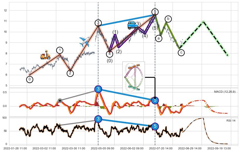 ➢ 波浪理论:猜想止涨 → 下跌 →【拐点】浪5已完成 → 大趋势均值回复