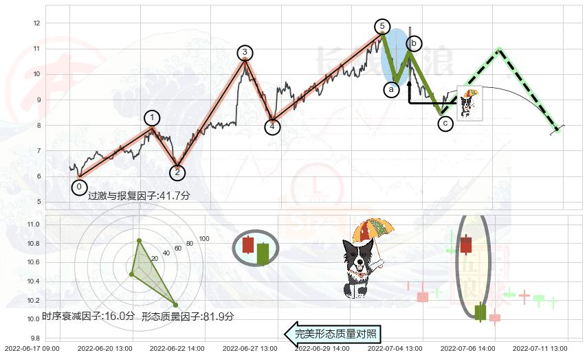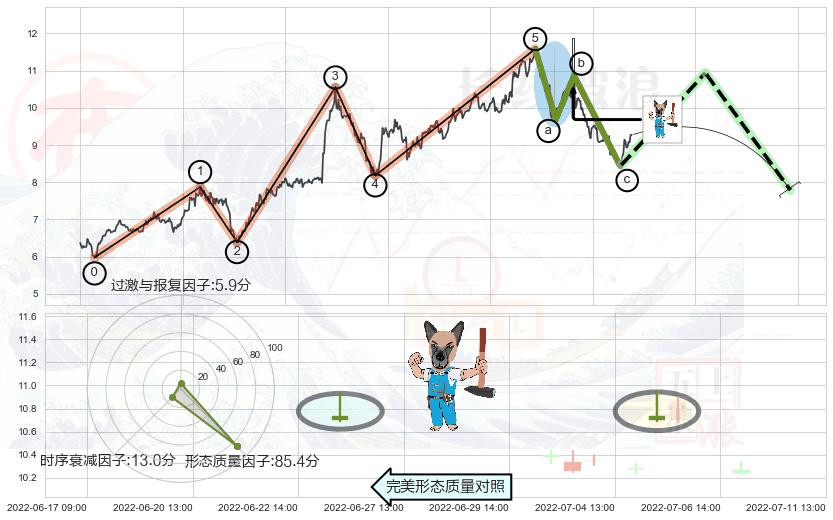 ➣ 顶部尽头线(下山虎) + 波浪理论上涨浪:浪5回调拐点信号叠加后【目标达成率】中等,【看空】信号叠加【存续影响中等】
