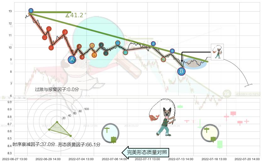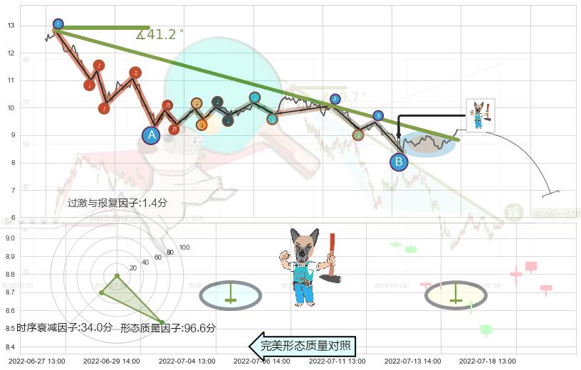 从2022-04-14 13:00至2022-07-21 14:00,共包含260个小时,阶段股价下跌-37.12%,阶段股价变动位移路程比: 1 : 6,下跌趋势角度: 41.2
