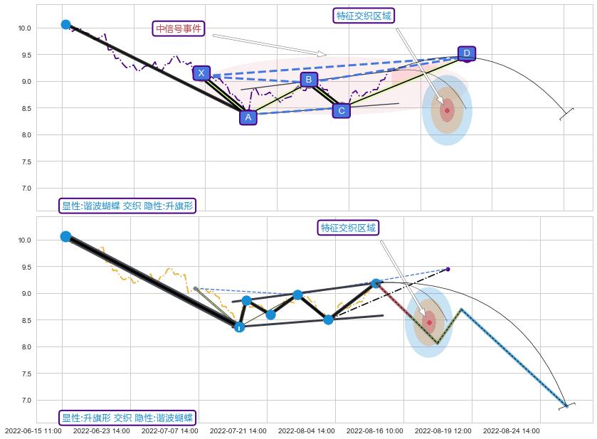 ➢ 谐波蝴蝶属【中级别信号事件】升旗形属【长级别信号事件】中长周期组合信号事件,中长事件长度比58.70%