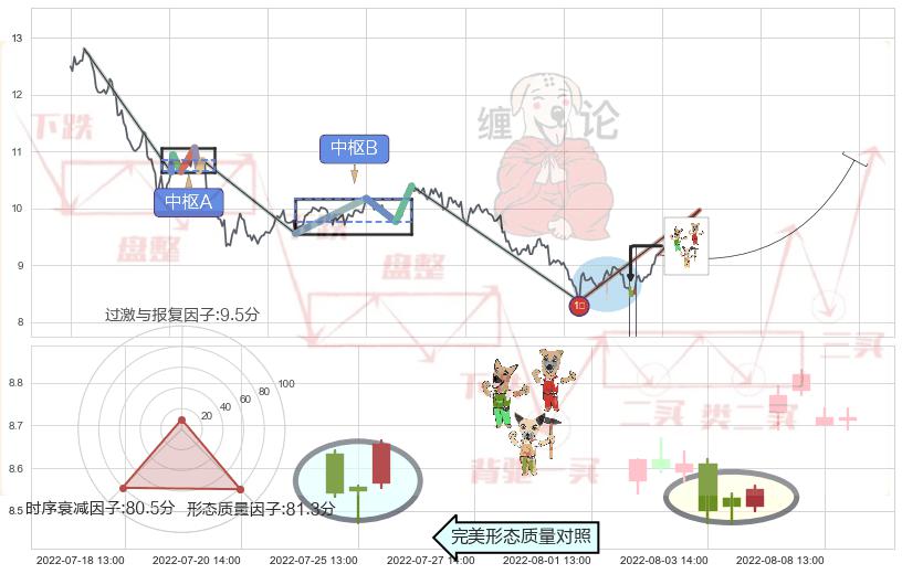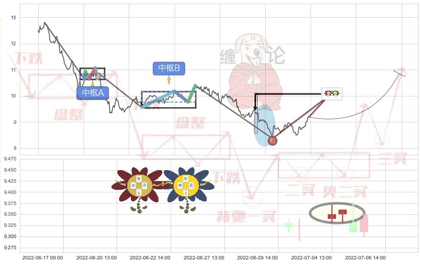 ➣ 缠论买卖点:下降缠中枢AB形成后猜想拐点1买已到达,猜想后续持续拉升(均值回复)