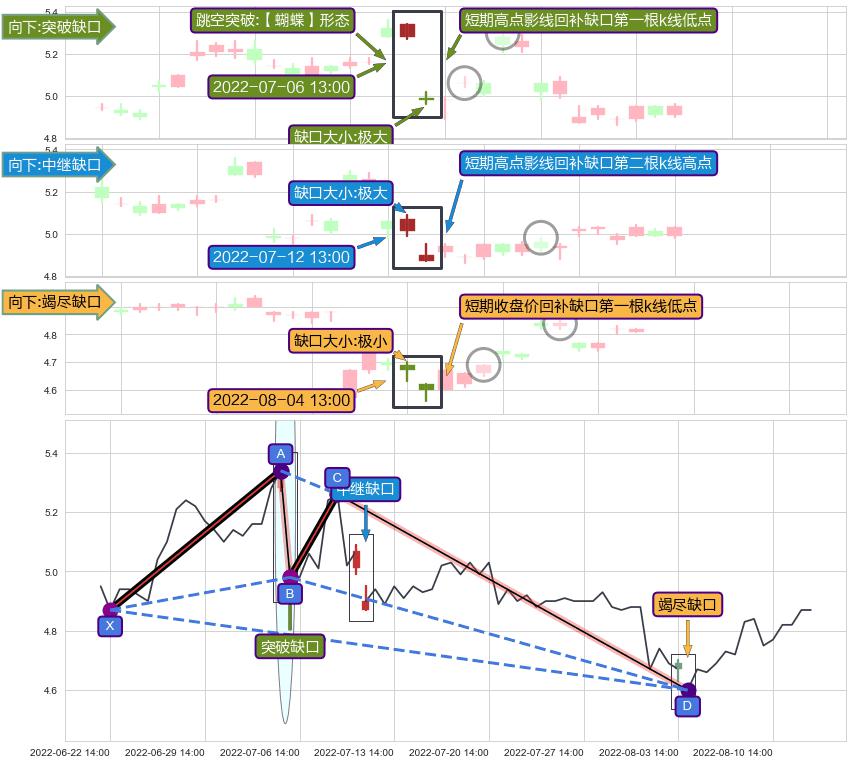 ➢ 2022-08-04 13:00形成:向下跳空【竭尽】缺口