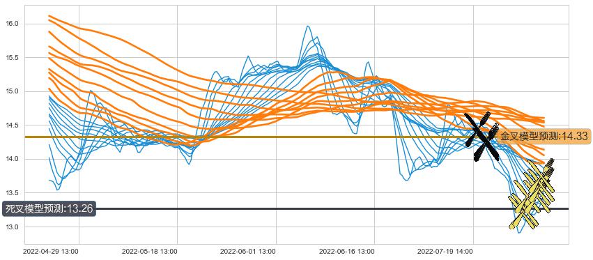 ➢ 45小时均线于(07-22 14:00: 14.21)形成【死叉】基于【死叉历史模型】预测死叉后最低波谷价格: 13.28, 死叉后最低价格12.85,已经下跌超出预测最低波谷价格, 预期反弹