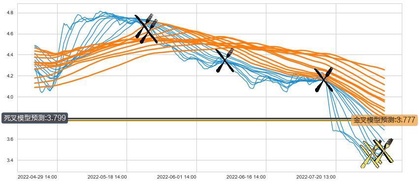 ➣ 55小时均线于(07-13 14:00: 4.16)形成【死叉】基于【死叉历史模型】预测死叉后最低波谷价格: 3.830, 死叉后最低价格3.340,已经下跌超出预测最低波谷价格, 预期反弹
