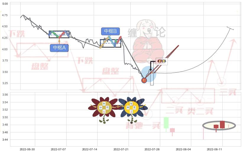 ♘ 在最后的下跌阶段2022-05-20 09:00至2022-08-09 13:00,存在 持续未破位的阻力位 ,阻力价格4.10,可信任强度87.37%,其距离最后价格3.480相差 +17.93%