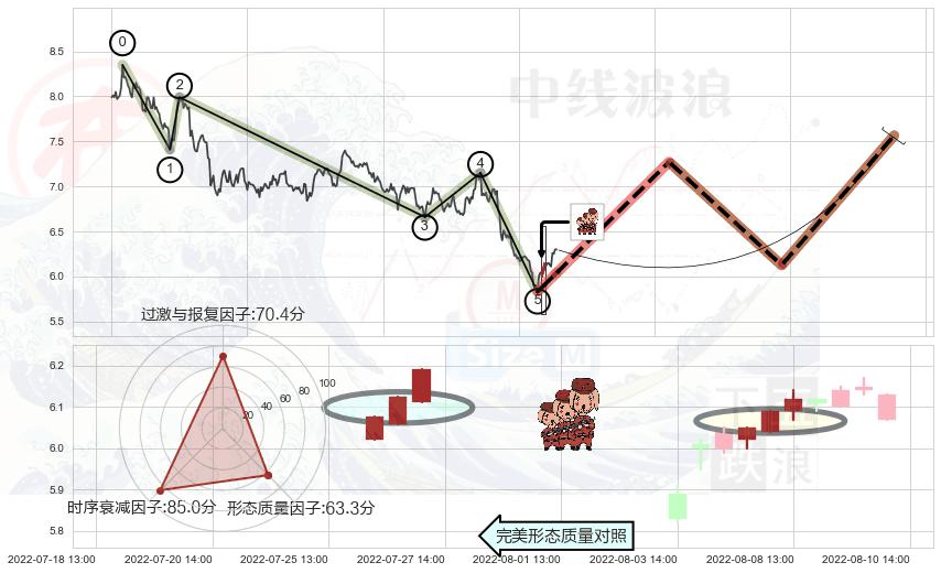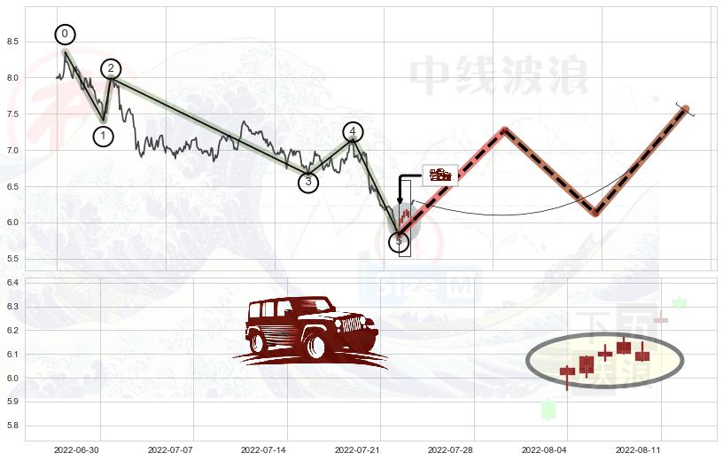 ➢ 🕰 价格走势在2022-08-04 00:00:00至2022-08-10 00:00:00期间形成低档五阳线,残存影响值:5.78