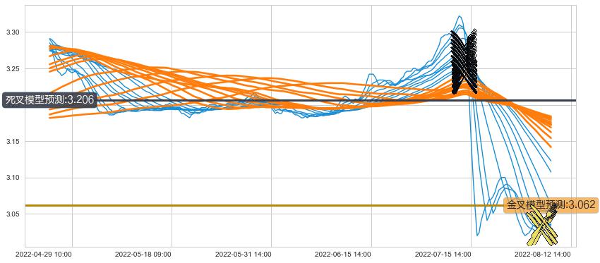 ➣ 34小时均线于(07-13 14:00: 3.275)形成【死叉】基于【死叉历史模型】预测死叉后最低波谷价格: 3.224, 死叉后最低价格3.000,已经下跌超出预测最低波谷价格, 预期反弹