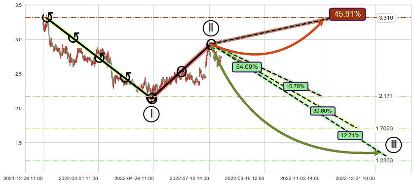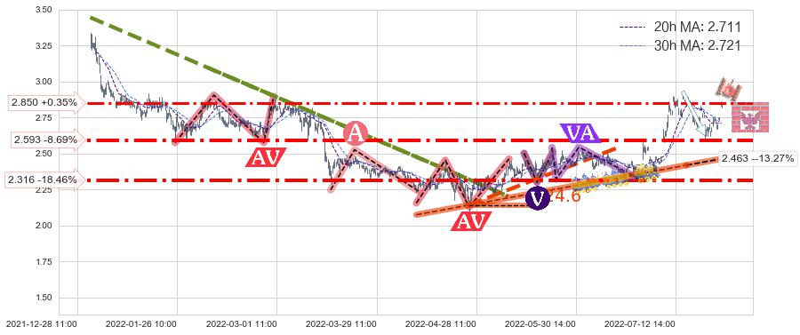 ♘ 支撑价格位2.316,可信任强度83.04%,距离最后交易2022-08-12 14:00形成的收盘价格2.840相差 -18.46%