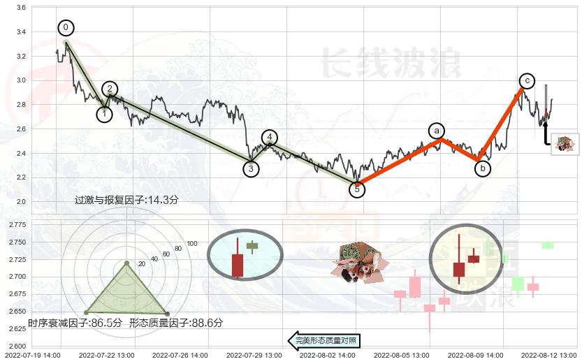 从2022-07-18 13:00至2022-08-12 14:00,共包含40个小时,阶段股价下跌-2.67%,阶段股价变动位移路程比: 1 : 15