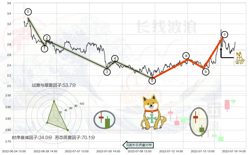 ➢ 底部尽头线(上山虎) 🔜 波浪理论击穿突破C点继续上涨 综合量化分数:53.24 【中性】