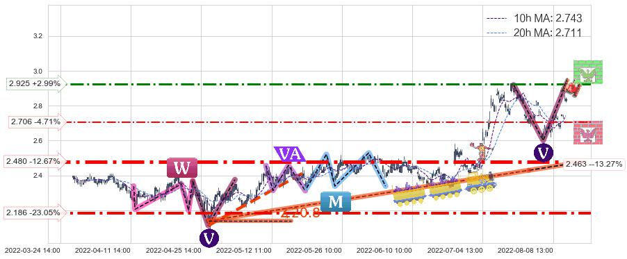 ♘ 阻力价格位2.925,可信任强度56.07%,距离最后交易2022-08-12 14:00形成的收盘价格2.840相差 +2.99%