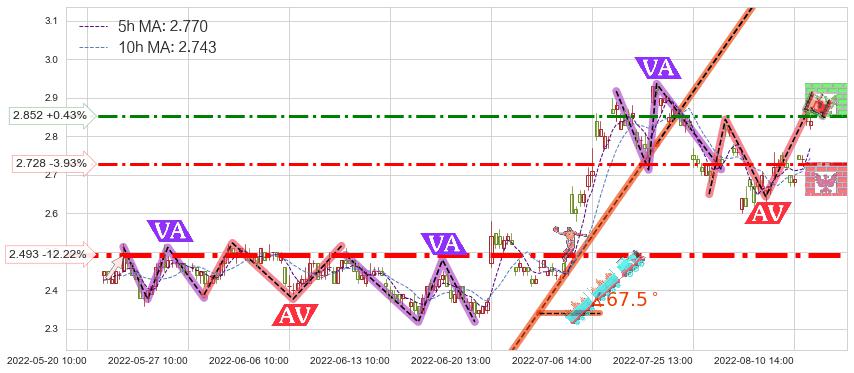♘ 阻力价格位2.852,可信任强度55.66%,距离最后交易2022-08-12 14:00形成的收盘价格2.840相差 +0.43%