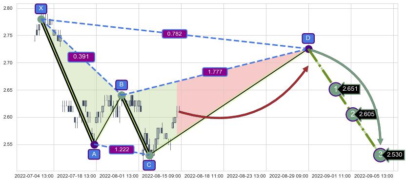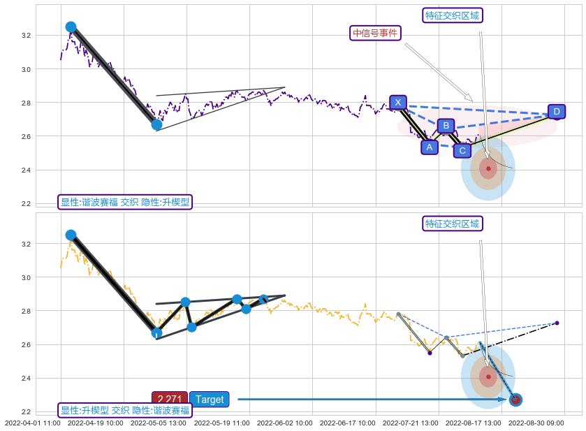 ➣ 未完成【赛福】形态起点X: 06-29:13, 已到达C点: 08-03:14, 预测最终D点: 08-29:09, 共126交易小时