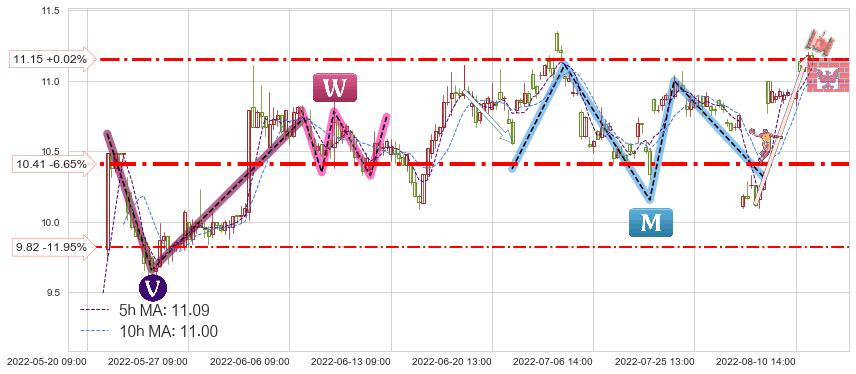 ♞ 5小时均线:11.09,10小时均线:11.00→ 快线>慢线