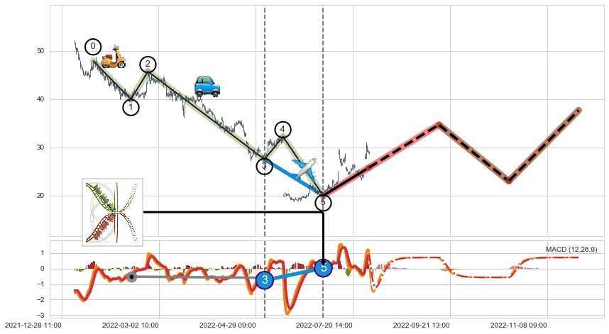 ➣ 上涨螺旋桨形态 + 波浪理论下跌浪:浪5反弹拐点信号叠加后【反向回撤率】极低,【看多】信号叠加【存续影响极大】