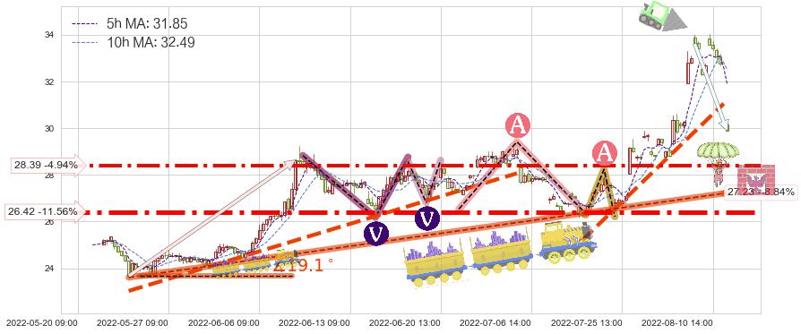 ♘ 支撑价格位26.42,可信任强度97.33%,距离最后交易2022-08-12 14:00形成的收盘价格29.87相差 -11.56%