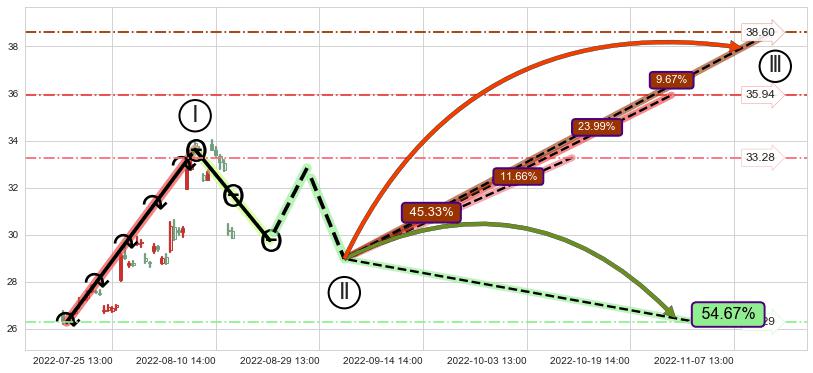 ➢ 循环浪继续向上【最低】位置(10-10:14, 33.28),匹配聚类样本比例25.73%, 可能性概率11.66%