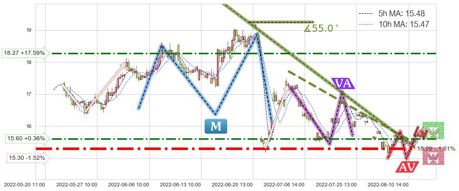 ♘ 阻力价格位15.60,可信任强度60.92%,距离最后交易2022-08-12 14:00形成的收盘价格15.54相差 +0.36%