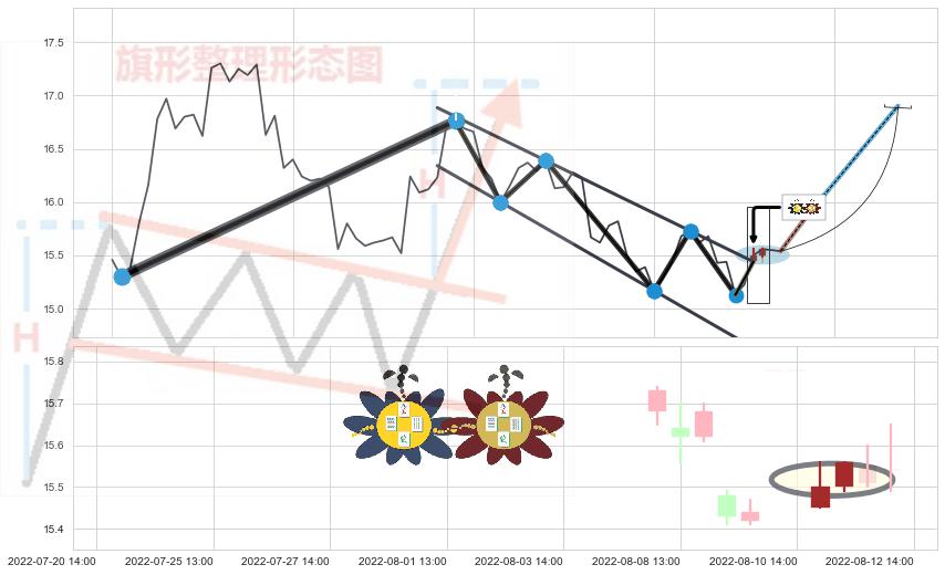➢ 【买1】: 激进型 买点 →(08-11:13: 15.44 )形成突破降⚑旗形【整理】形态