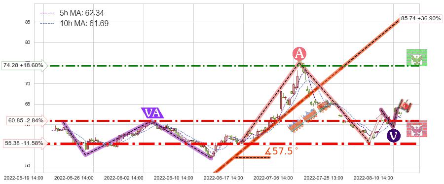 ♘ 支撑价格位60.85,可信任强度70.50%,距离最后交易2022-08-12 14:00形成的收盘价格62.63相差 -2.84%