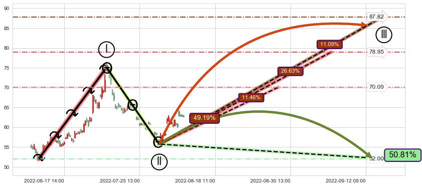 ♘ 阻力价格位74.28,可信任强度56.41%,距离最后交易2022-08-12 14:00形成的收盘价格62.63相差 +18.60%