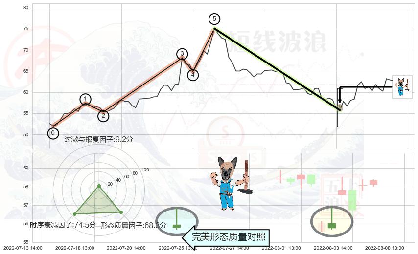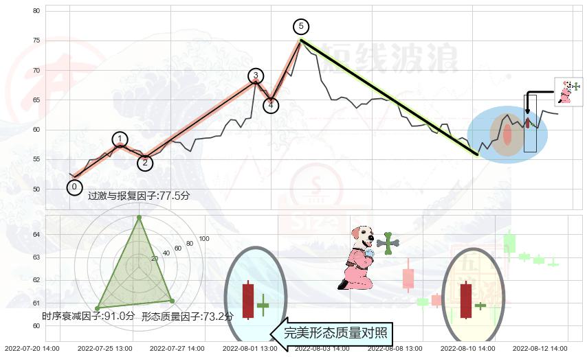 ➢ 🕰 价格走势在2022-08-03 13:00:00至2022-08-03 14:00:00期间形成射击之星形态,残存影响值:-4.47
