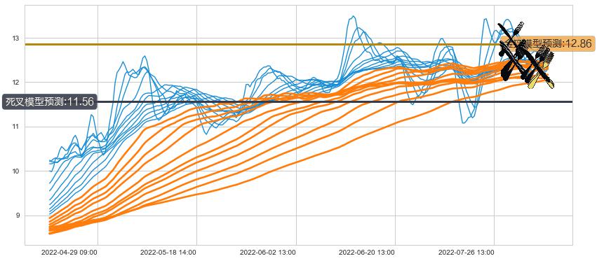 ➣ 50小时均线于(08-01 14:00: 12.48)形成【死叉】基于【死叉历史模型】预测死叉后最低波谷价格: 11.49, 死叉后最低价格11.83,尚未达到预测最低波谷价格, 预期继续下跌