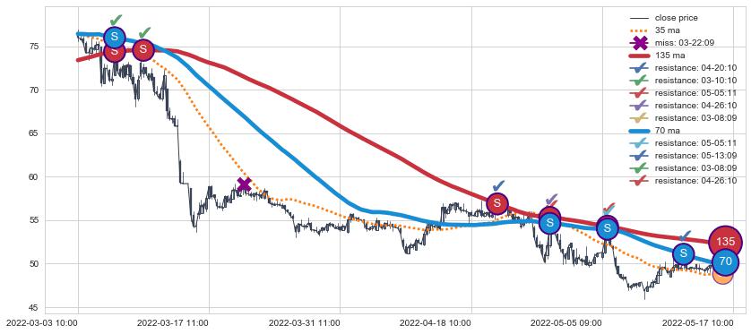 ➣ 70小时均线于(07-08 13:00: 55.80)形成【死叉】基于【死叉历史模型】预测死叉后最低波谷价格: 52.71, 死叉后最低价格49.46,已经下跌超出预测最低波谷价格, 预期反弹