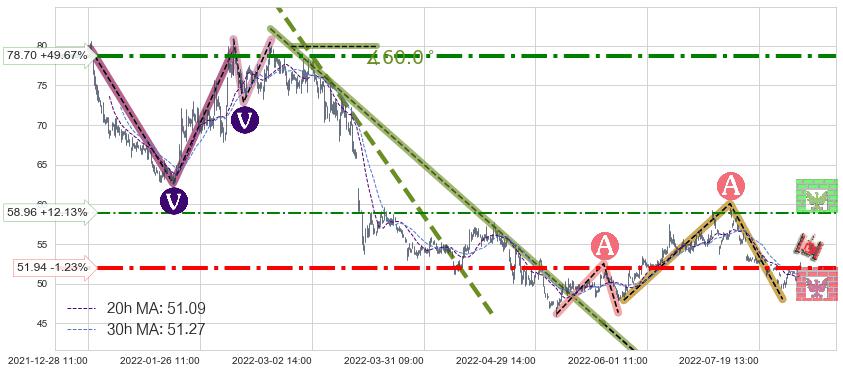 ♞ 20小时均线:51.09,30小时均线:51.27→ 快线<慢线
